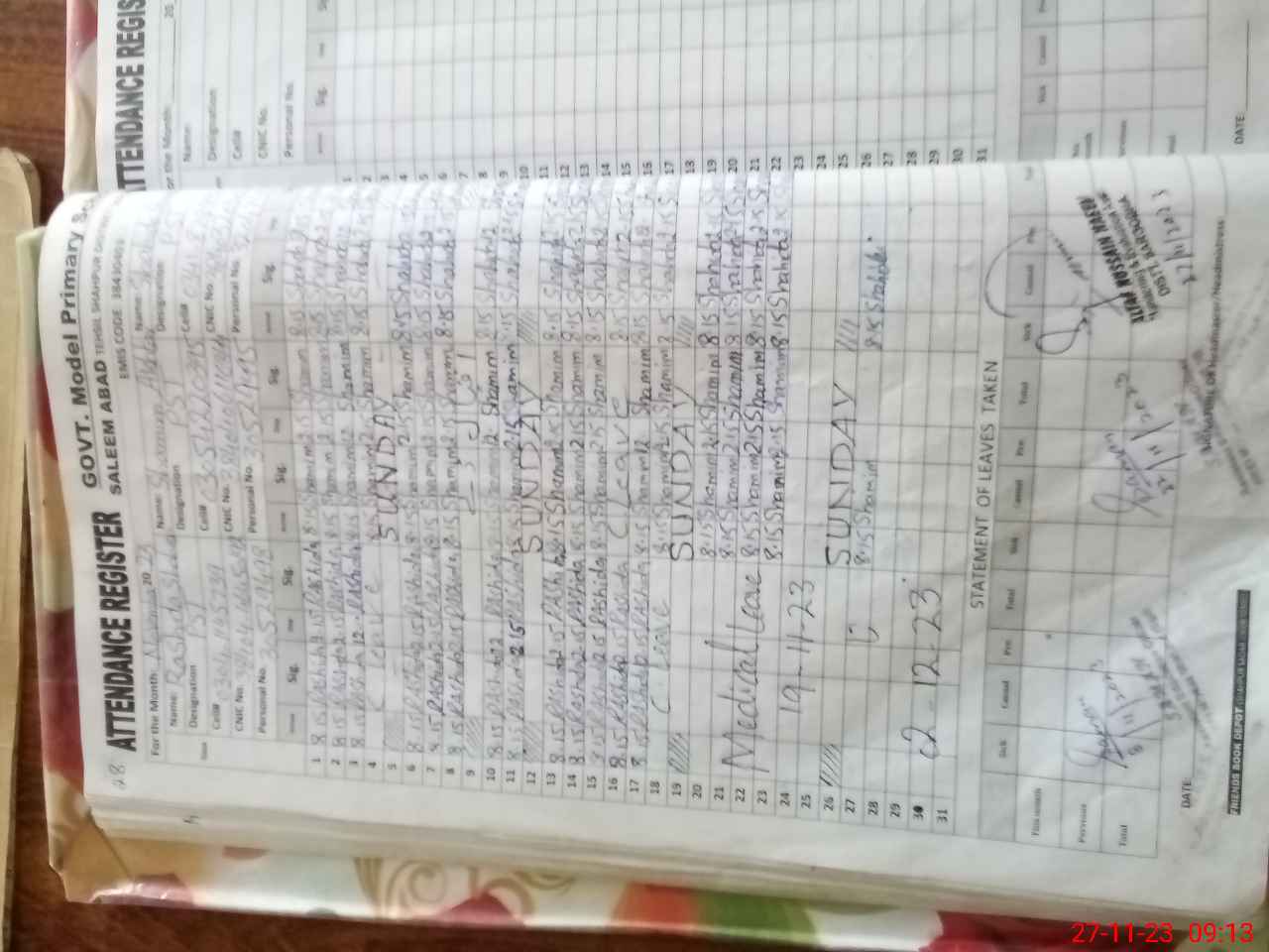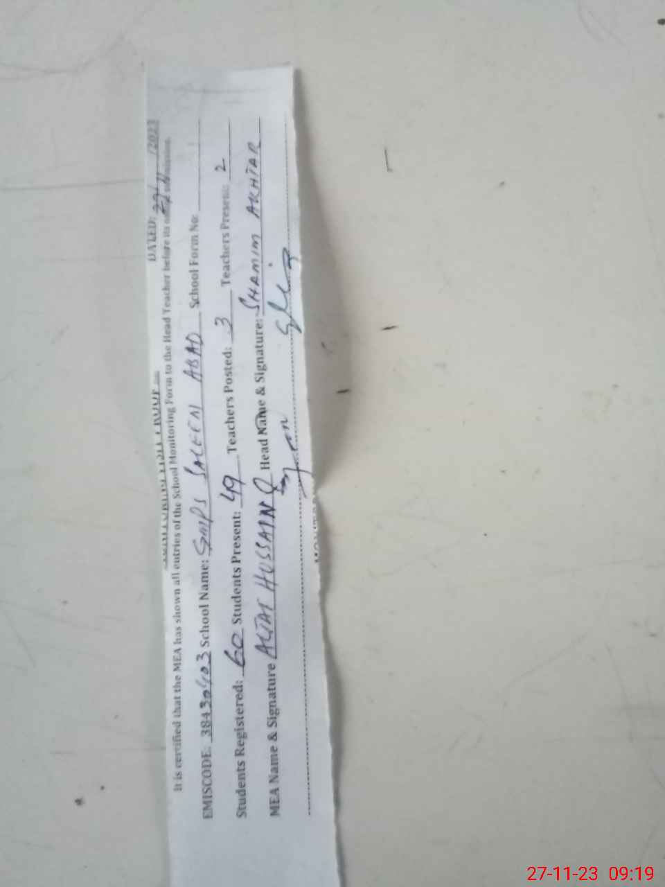 | Name: SH**** PA**** Designation: (School Headmaster's/Headmistress's) PST Phone/Cell Number: 03**** |