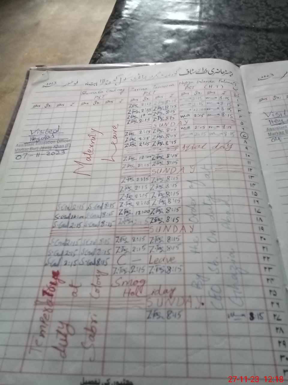 | Leave | Duty | Absent | Maternity | Medical | Ex- Pak |