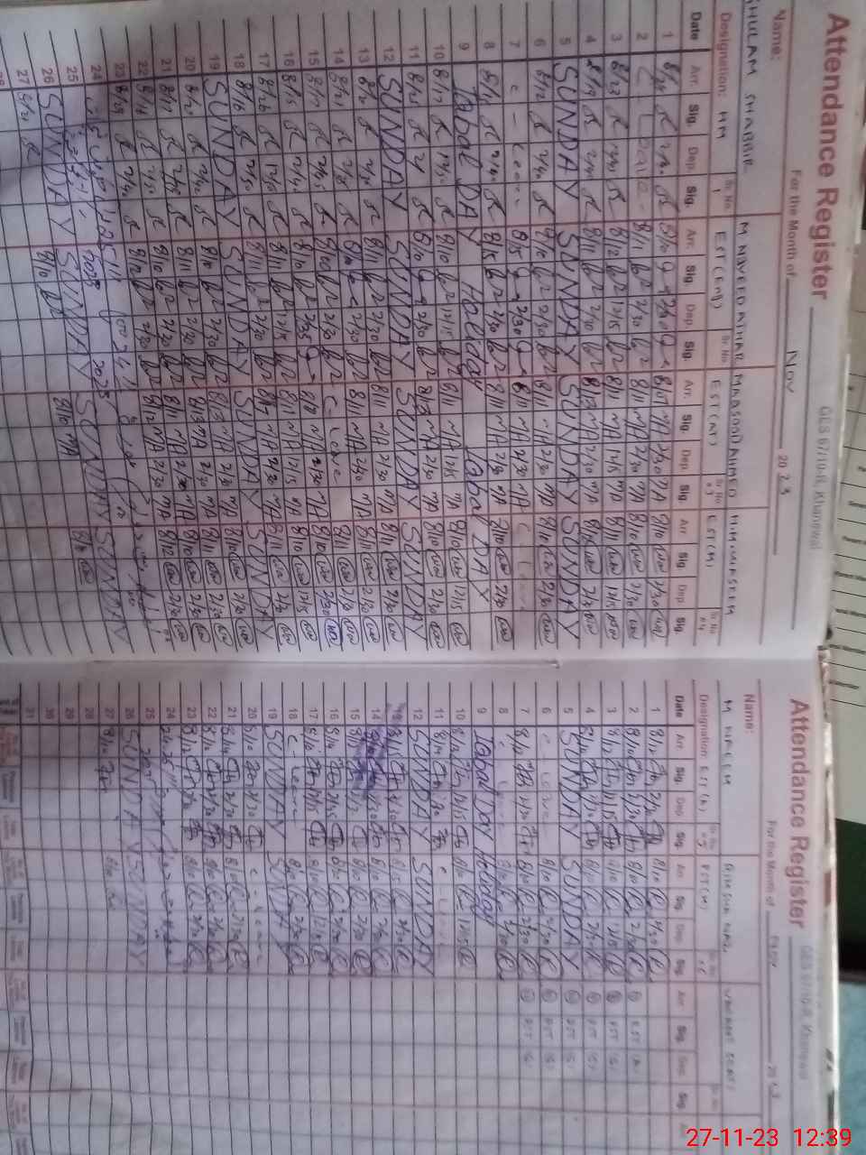 | Monitoring Date: 27-11-2023 | Start Time: 27-11-2023 11:56 AM | End Time: 27-11-2023 12:45 PM | Name of MEA: Sh**** Na**** | |