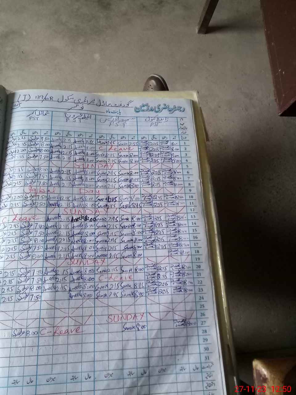 | CNIC | Full Name | Designation | R/C | Absence During Last Calender Month |