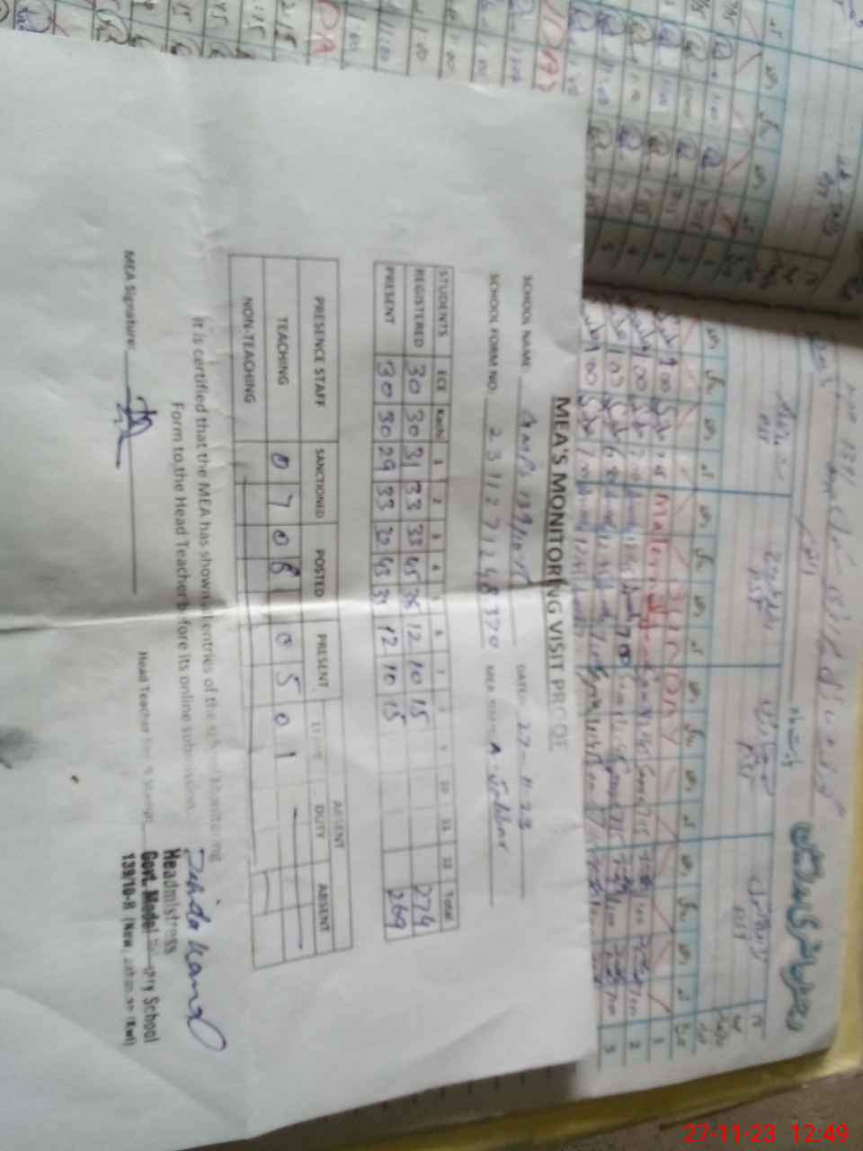 | Attendance Register | Head Teacher | MEA with School | Visit Proof |