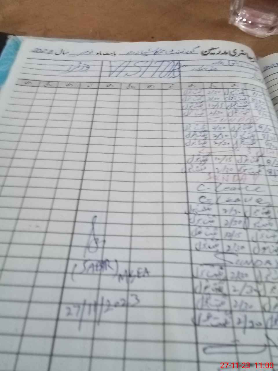 | CNIC | Full Name | Designation | R/C | Absence During Last Calender Month |