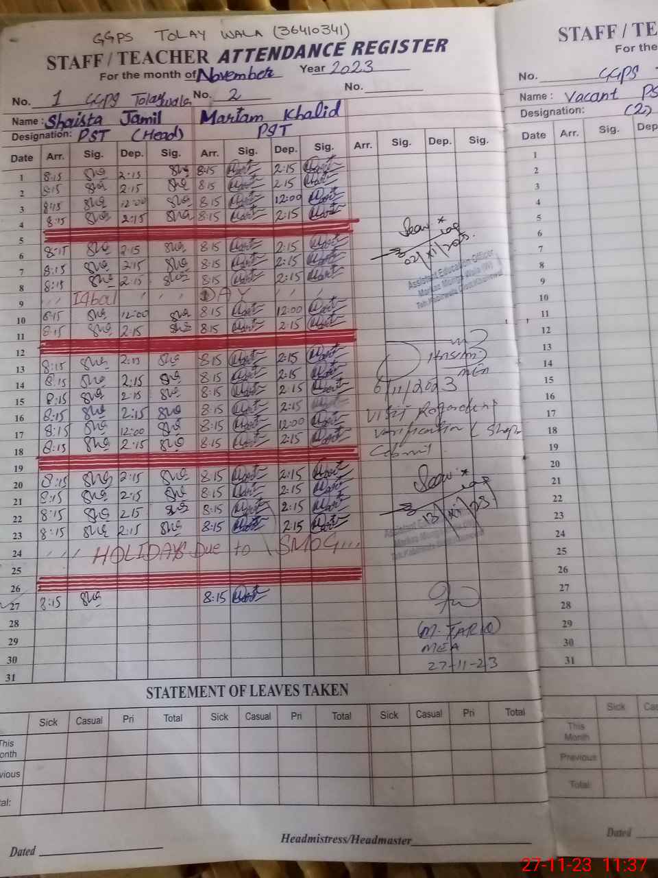 | Monitoring Date: 27-11-2023 | Start Time: 27-11-2023 11:35 AM | End Time: 27-11-2023 12:33 PM | Name of MEA: MU**** TA**** | |
