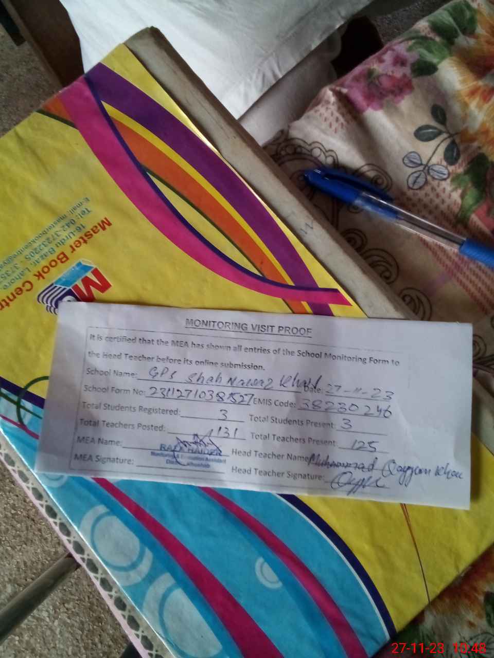 | Attendance Register | Head Teacher | MEA with School | Visit Proof |