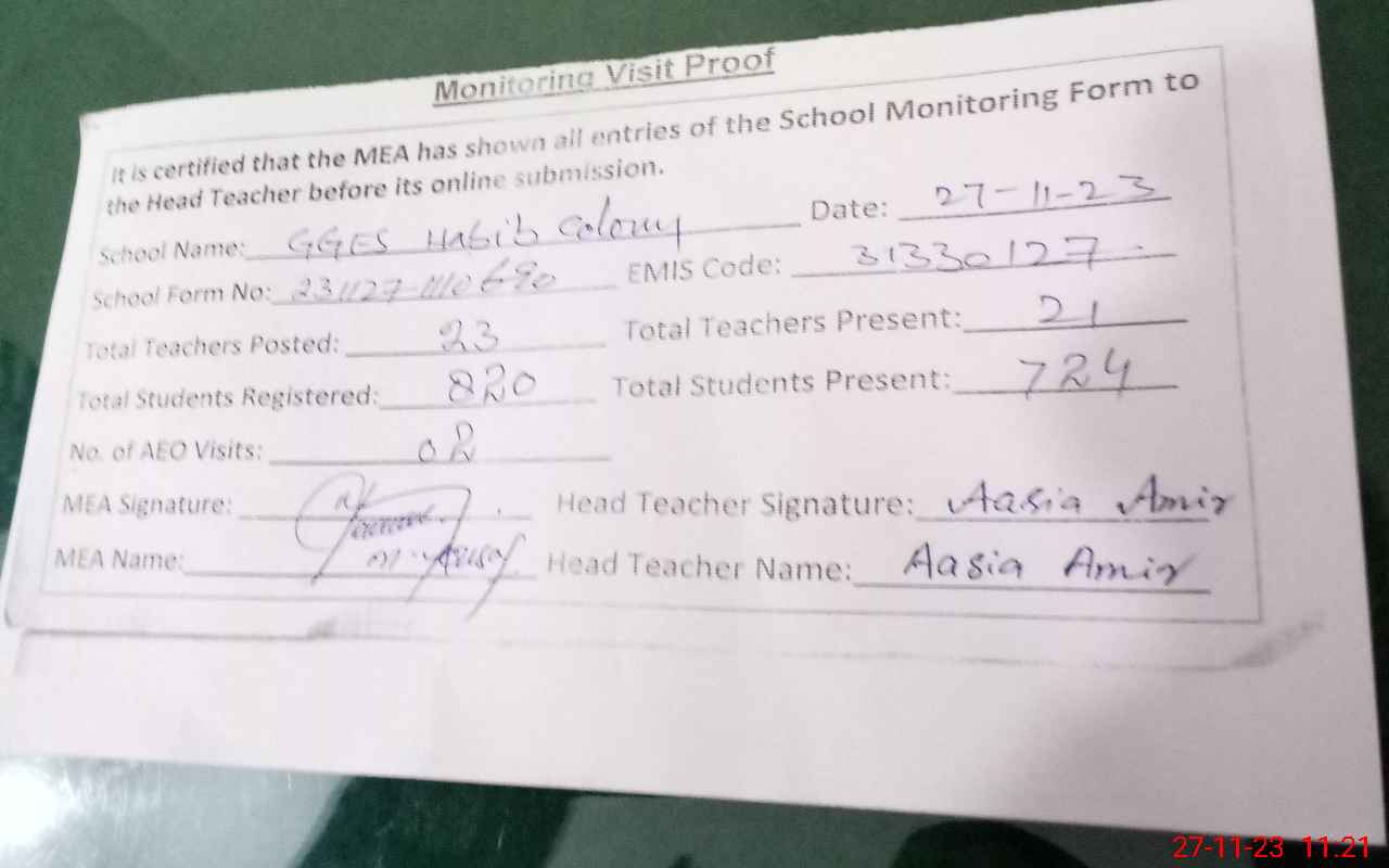 | EMIS Code: 31330127 | Name of School: GGES HABIB COLONY STREET NO. 7 | |||