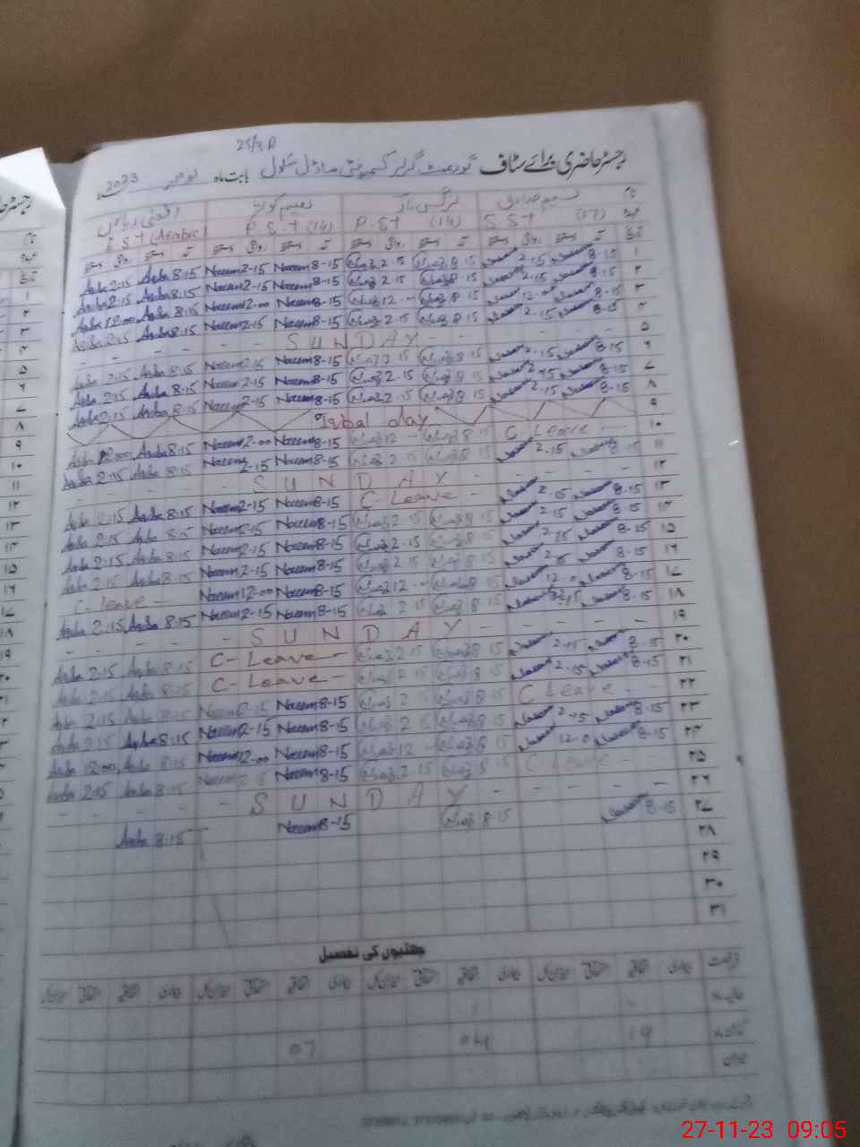 | CNIC | Full Name | Designation | R/C | Absence During Last Calender Month |
