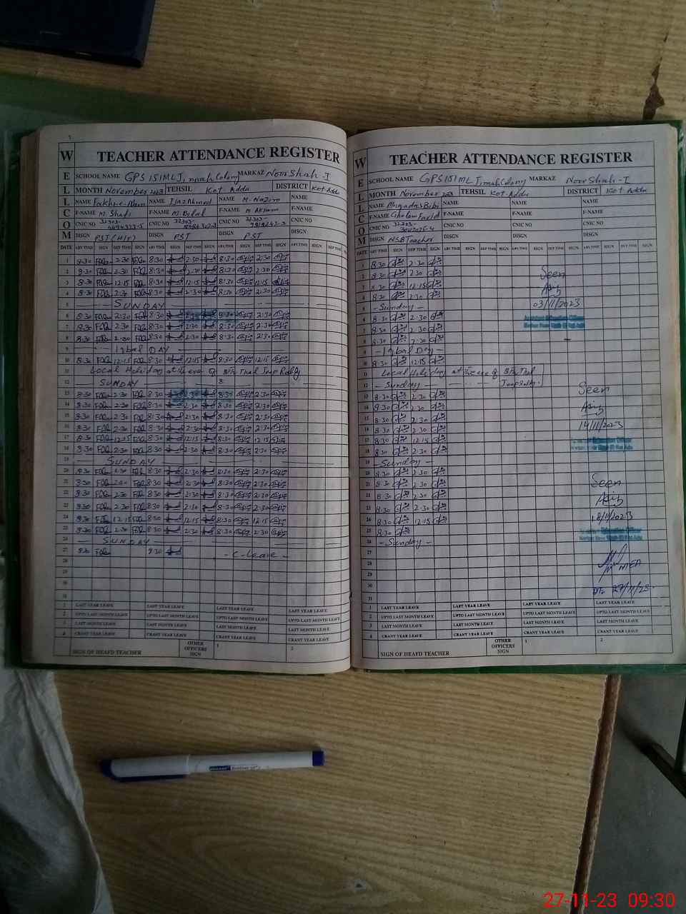 | CNIC | Full Name | Designation | R/C | Absence During Last Calender Month |