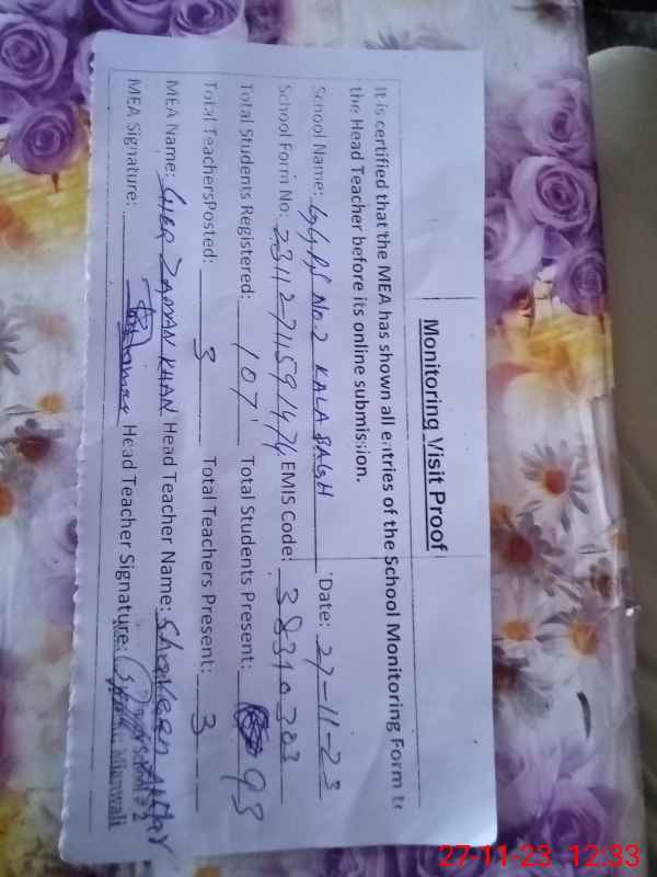 | EMIS Code: 38310303 | Name of School: GGPS NO. 2 KALA BAGH | |||