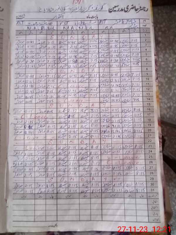 | CNIC | Full Name | Designation | R/C | Absence During Last Calender Month |