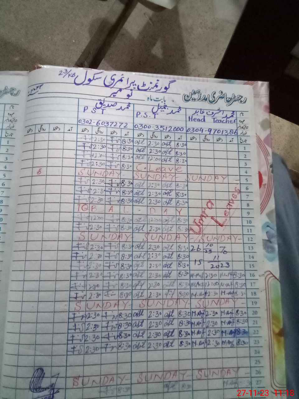 | Name: AN**** JA**** Designation: (School Headmaster's/Headmistress's) PST Phone/Cell Number: 03**** |