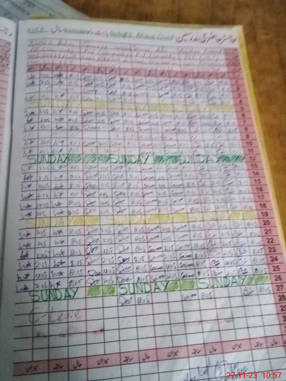 | CNIC | Full Name | Designation | R/C | Absence During Last Calender Month |