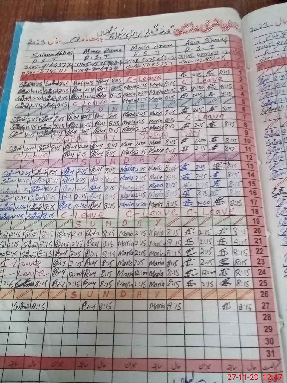 | Name: AS**** SH**** Designation: (School Headmaster's/Headmistress's) PST Phone/Cell Number: 03**** |