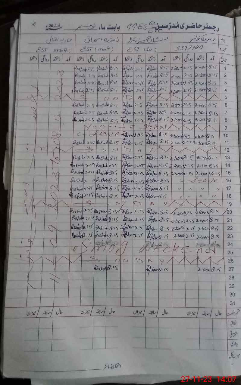 | CNIC | Full Name | Designation | R/C | Absence During Last Calender Month |