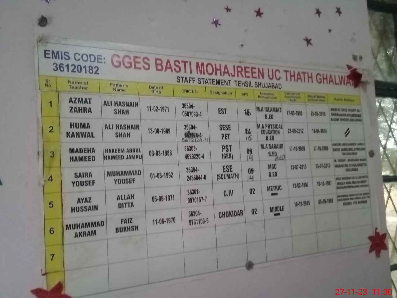 | EMIS Code: 36120182 | Name of School: GGES BASTI MUHAJREEN P/O KANWARA SHUJABAD | |||
