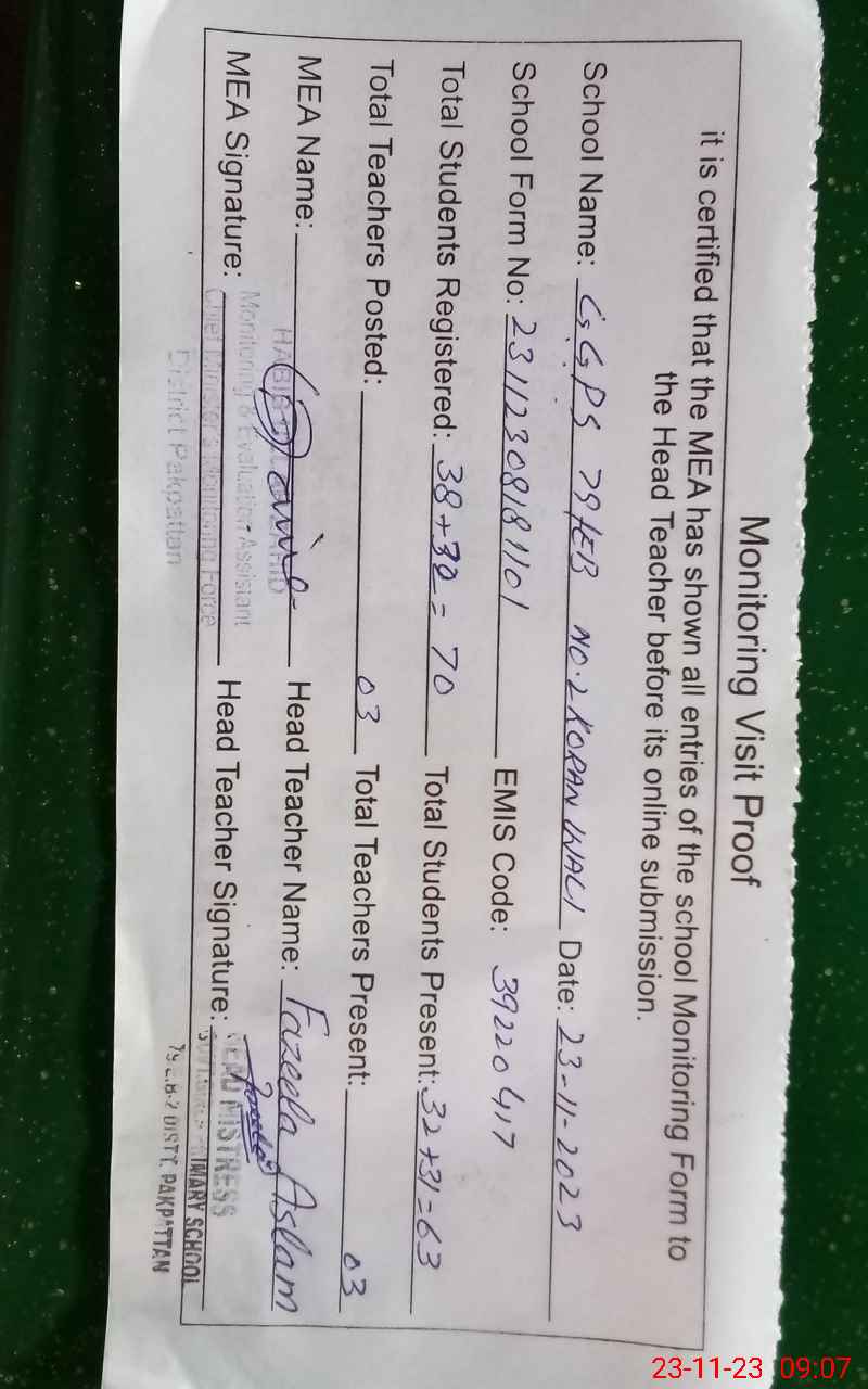 | EMIS Code: 39220417 | Name of School: GGPS 79 / EB NO.2 KORAN WALI BASTI P.O 69 EB | |||
