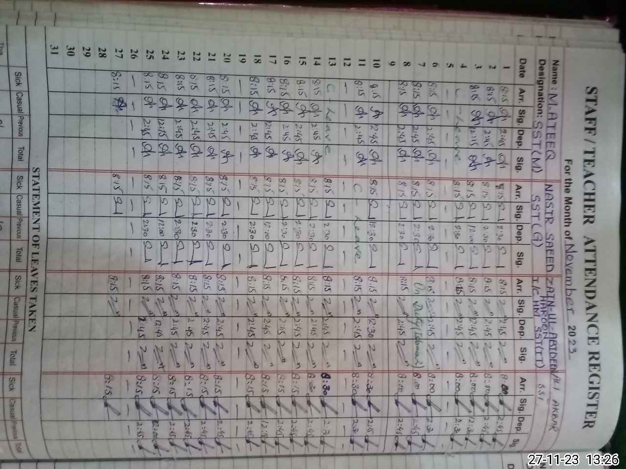 | Leave | Duty | Absent | Maternity | Medical | Ex- Pak |