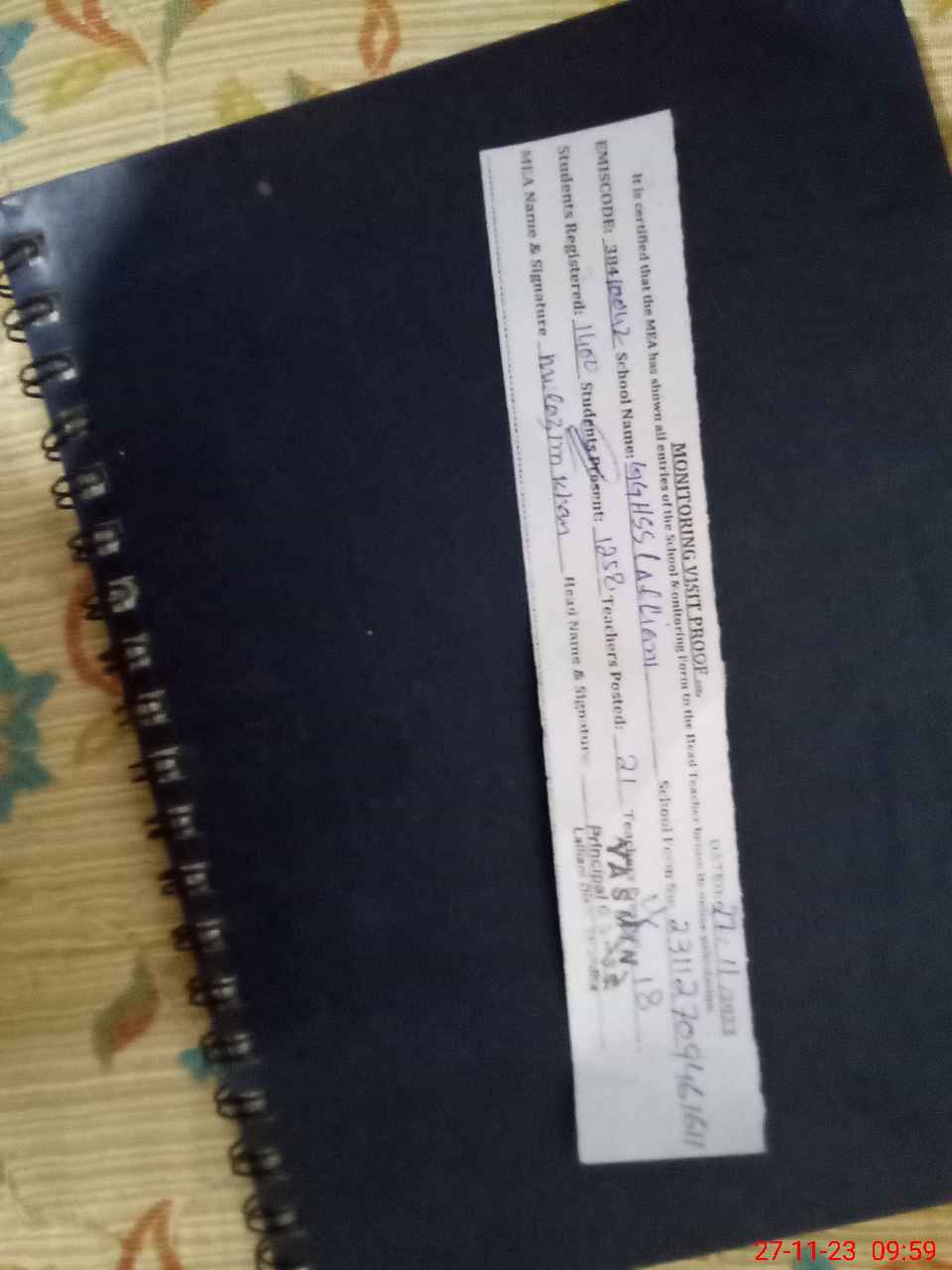| Monitoring Date: 27-11-2023 | Start Time: 27-11-2023 09:17 AM | End Time: 27-11-2023 09:59 AM | Name of MEA: MU**** KH**** | |