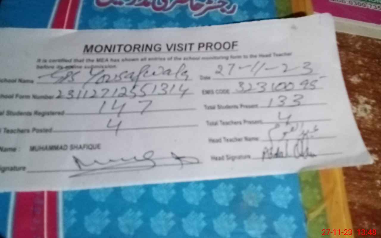 | Attendance Register | Head Teacher | MEA with School | Visit Proof |