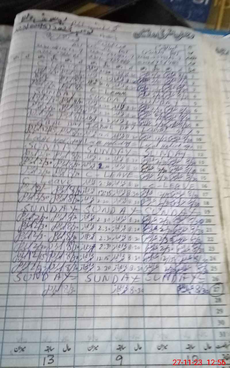 | CNIC | Full Name | Designation | R/C | Absence During Last Calender Month |