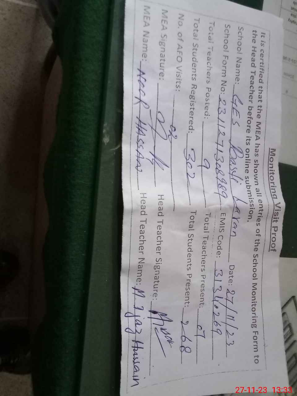 | EMIS Code: 31340269 | Name of School: GES BASTI LARAN | |||