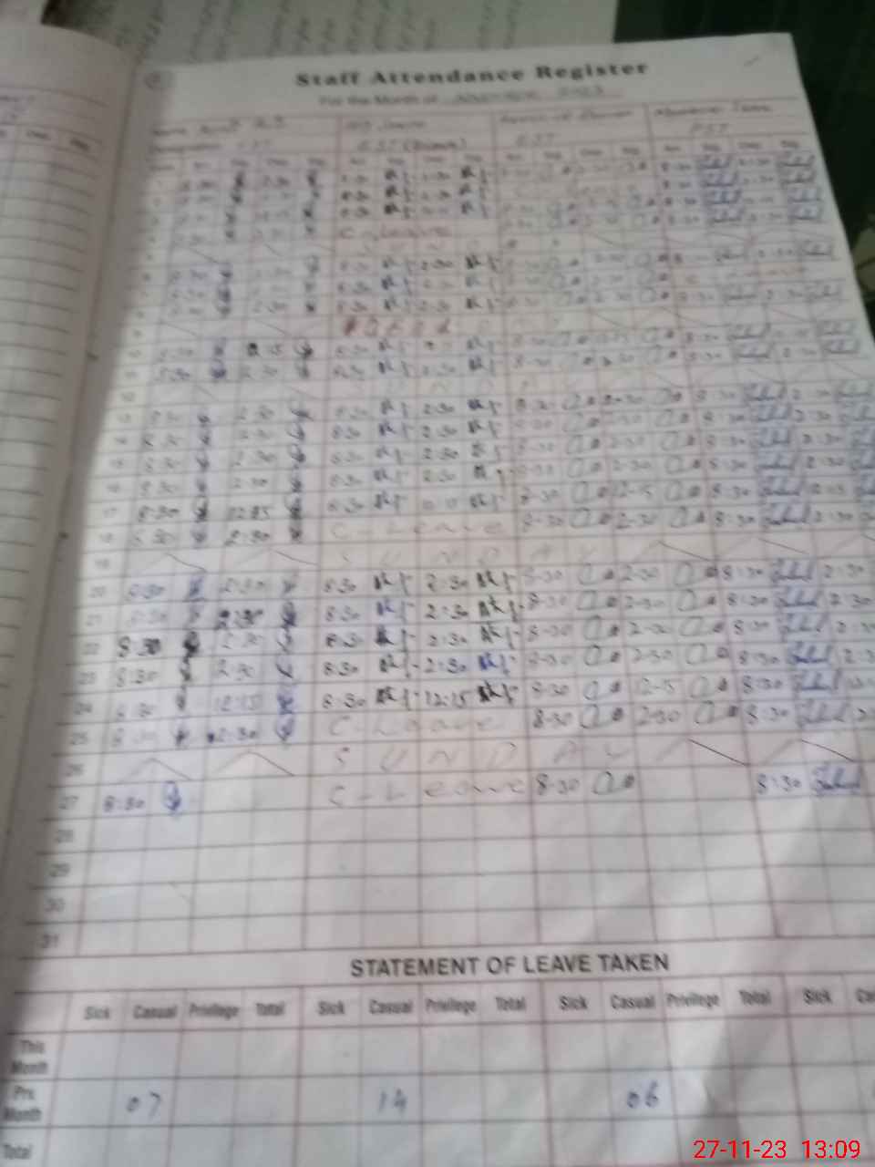 | 31**** | Sk**** Ha**** | 2 | 0 | 0 | 31 | 0 | 0 | 0 | 0 | 0 | 0 | Absent (Un-Authorized) | |
