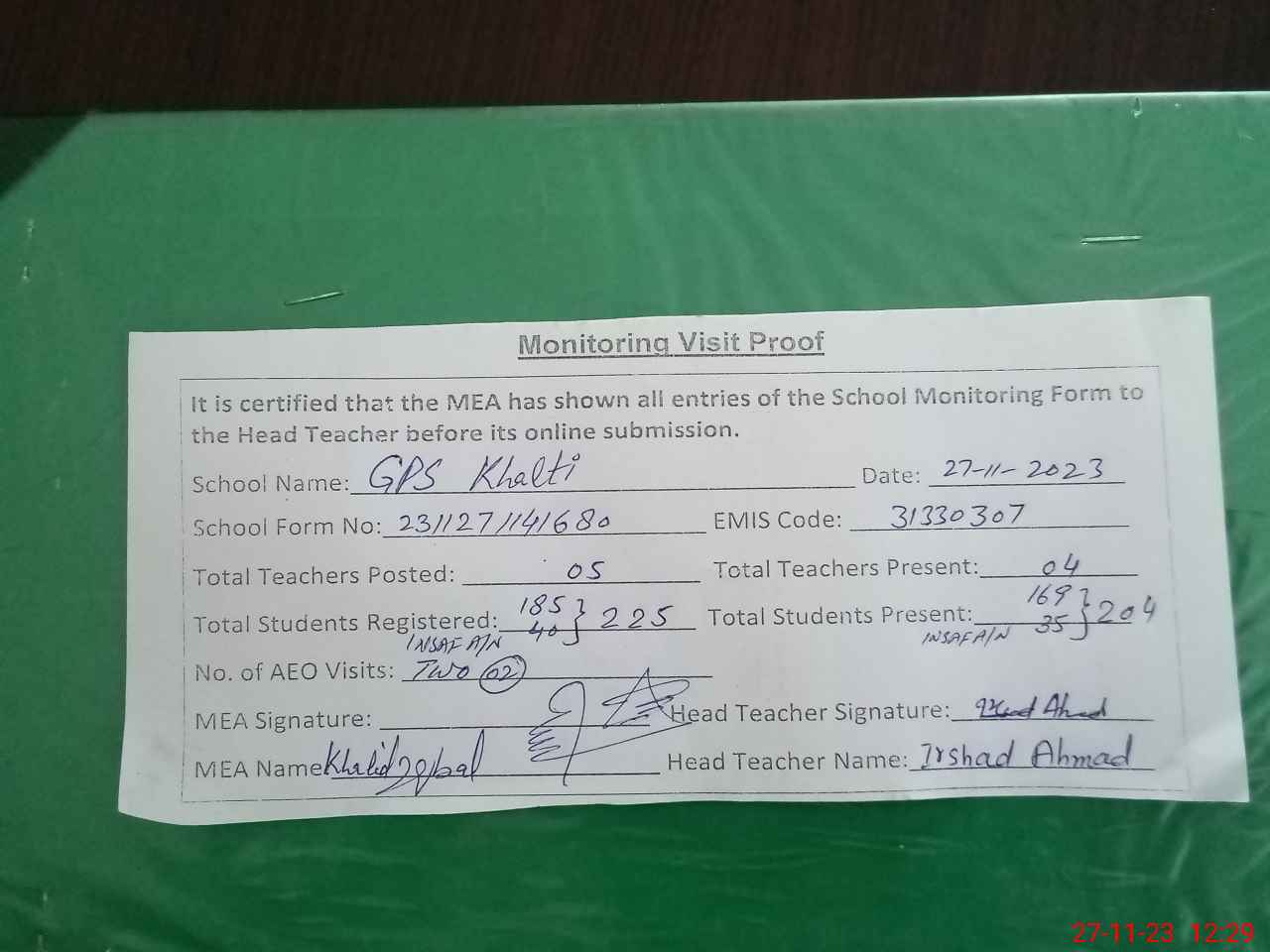 | EMIS Code: 31330307 | Name of School: GPS KHALTI | |||