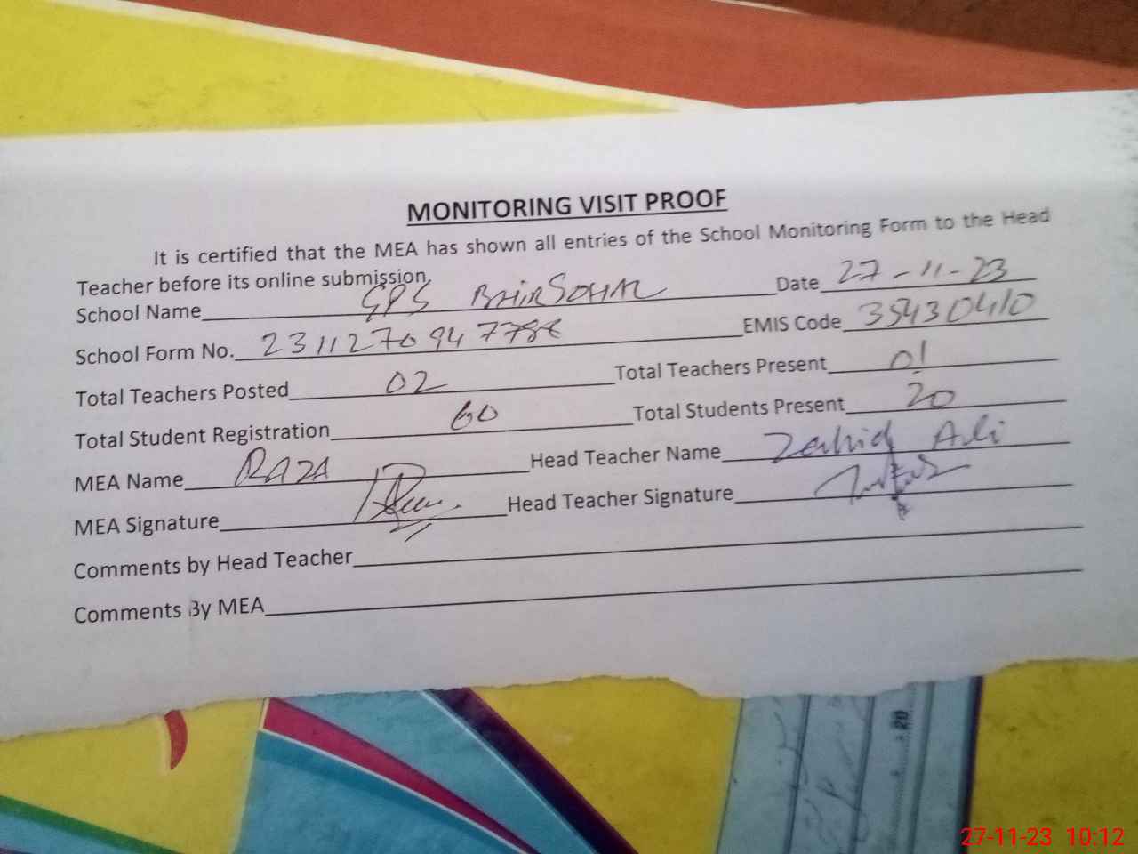 | EMIS Code: 35430410 | Name of School: GPS BHIR SOHAL | |||