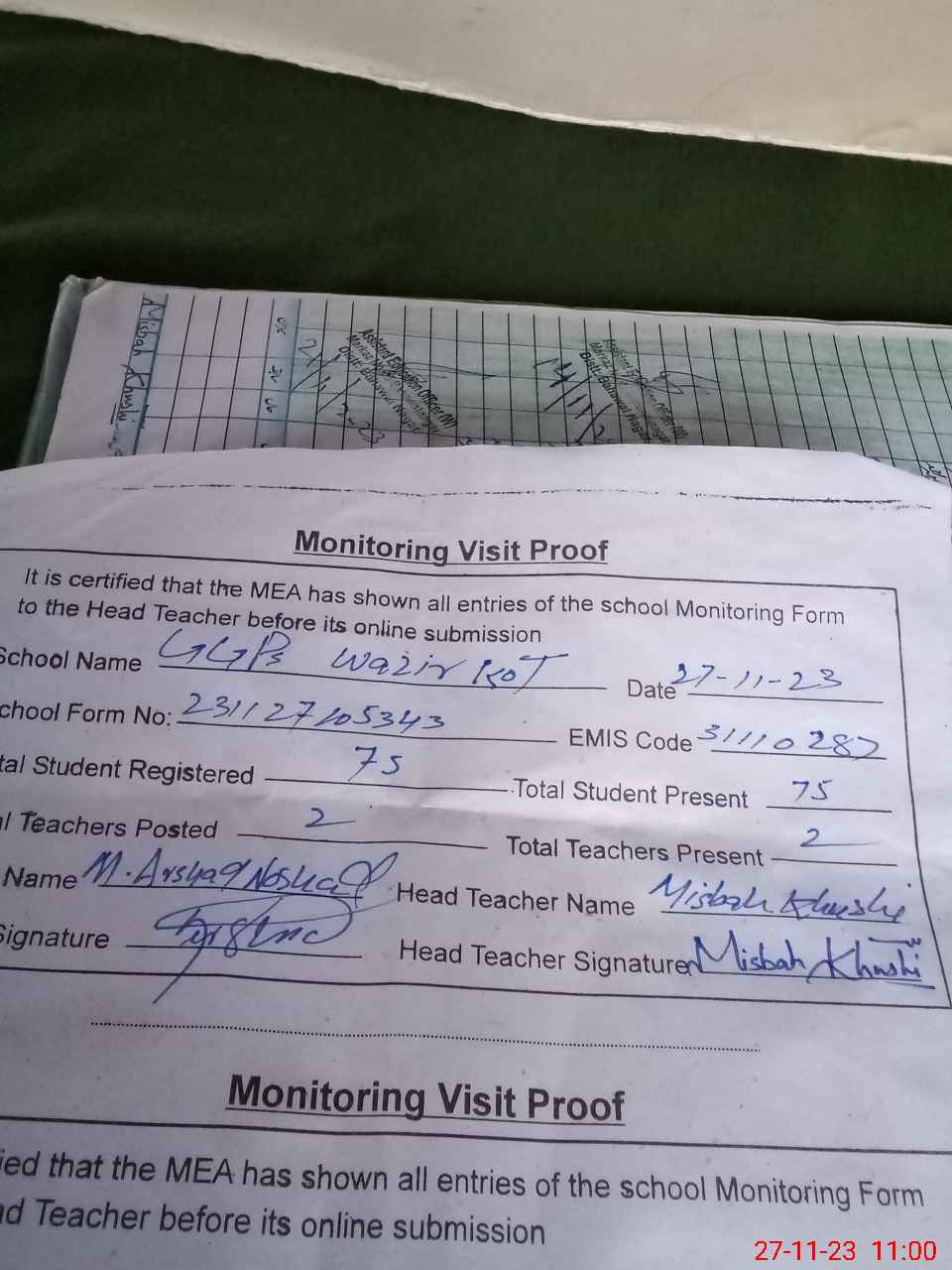 | EMIS Code: 31110287 | Name of School: GGPS WAZIR KOT | |||
