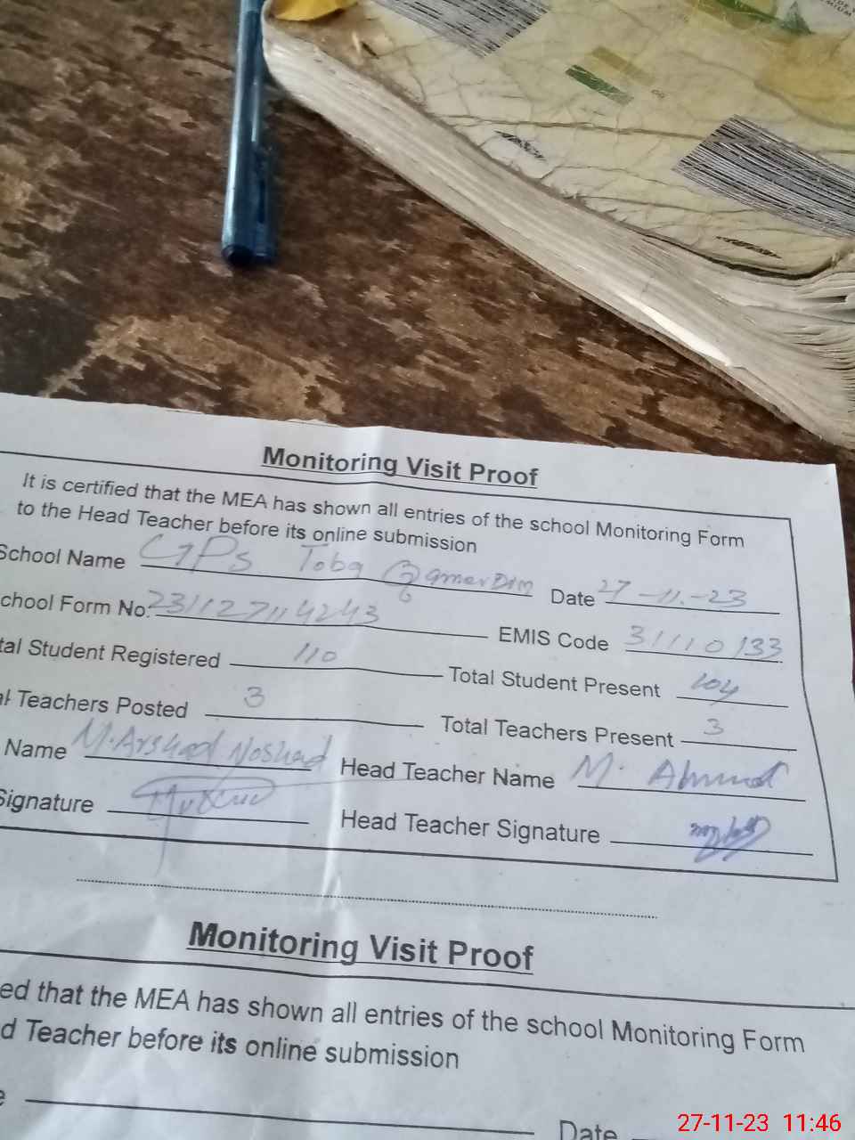 | EMIS Code: 31110133 | Name of School: GPS TOBA QUMMAR DIN | |||