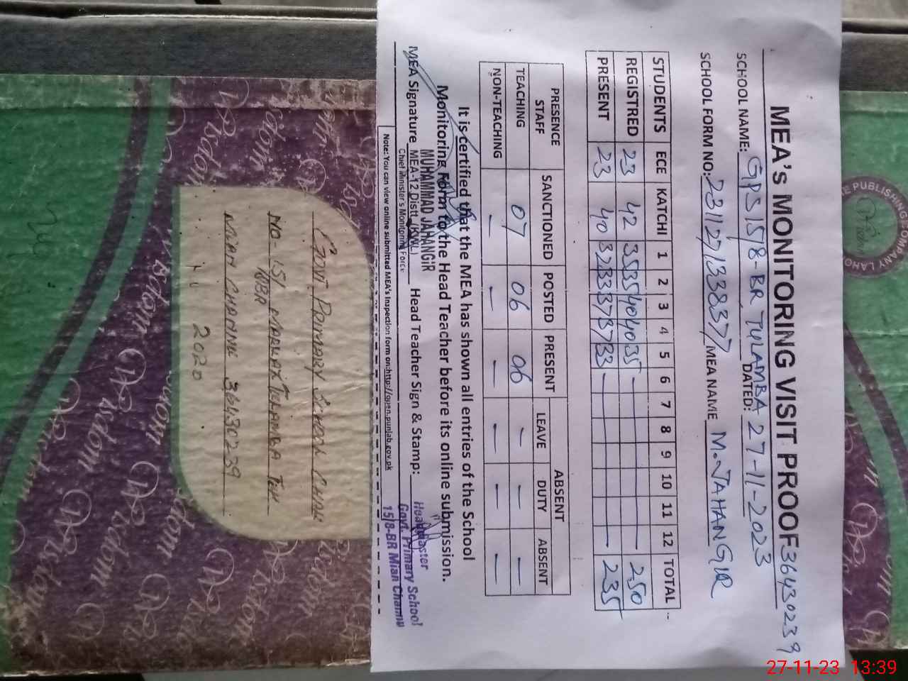 | EMIS Code: 36430239 | Name of School: GPS 15/8-BR, TULAMBA | |||