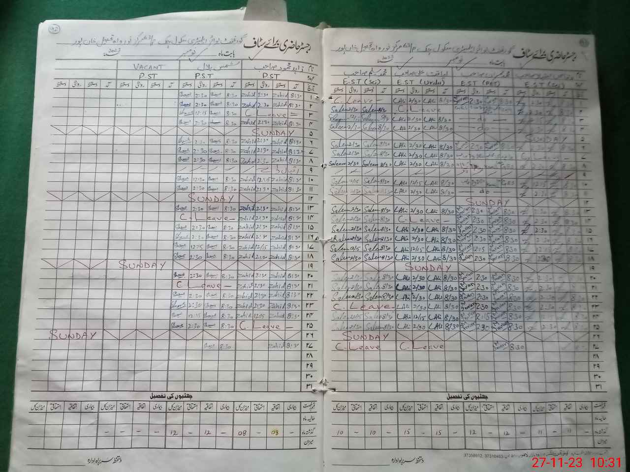 | 31**** | Ja**** Mu**** Sa**** | EST(GENERAL) | Temporary | 2 | 0 | 0 | 0 | 0 | 0 | 0 | 0 | 2 | Casual |