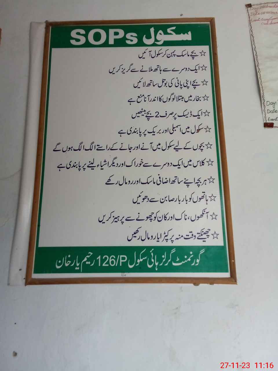| EMIS Code: 31330152 | Name of School: GGHS CHAK NO. 126/P | |||