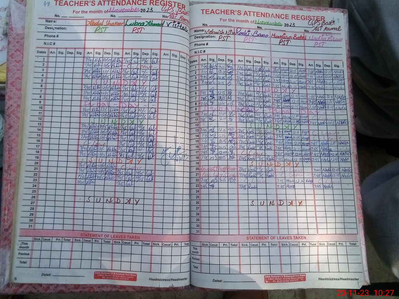| Name: AB**** SH**** Designation: (School Headmaster's/Headmistress's) PST Phone/Cell Number: 03**** |