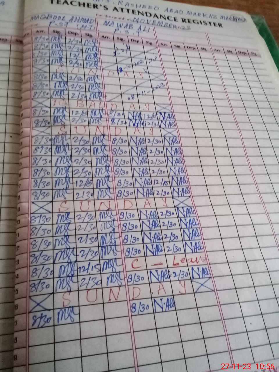 | CNIC | Full Name | Designation | R/C | Absence During Last Calender Month |