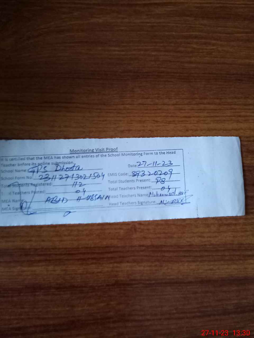 | EMIS Code: 39320209 | Name of School: GPS DHOOTA | |||