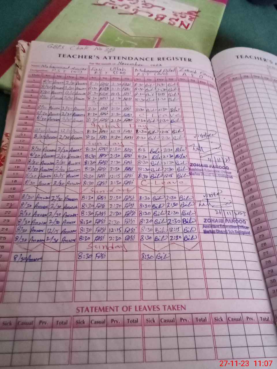 | Name: M.**** Designation: (School Headmaster's/Headmistress's) PST Phone/Cell Number: 03**** |