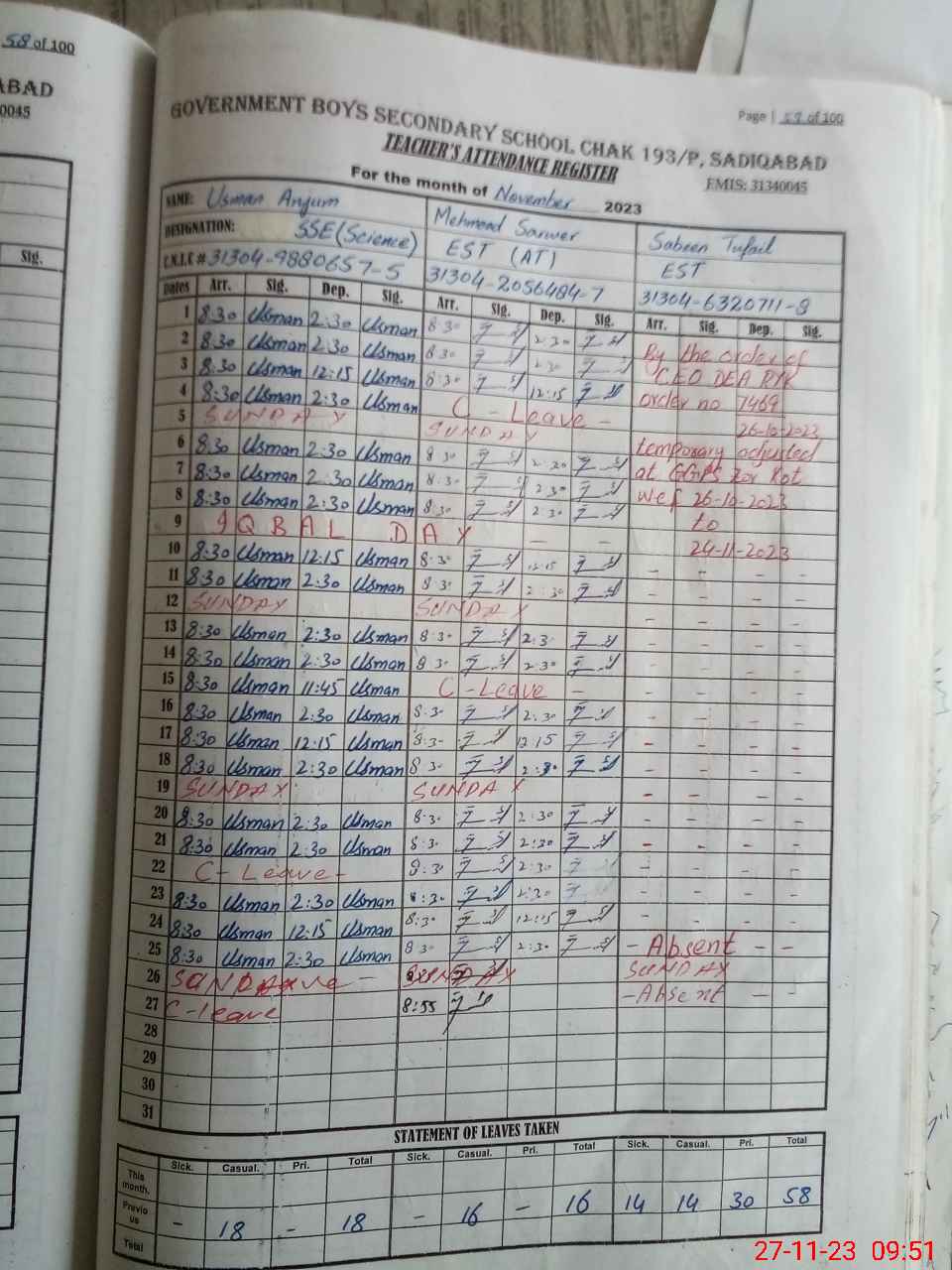 | 31**** | Us**** An**** | 2 | 3 | 0 | 0 | 0 | 0 | 0 | 0 | 0 | 3 | Absent (Un-Authorized) | |