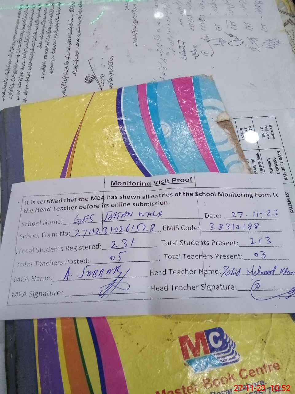 | EMIS Code: 38310188 | Name of School: GES JATTAN WALA | |||