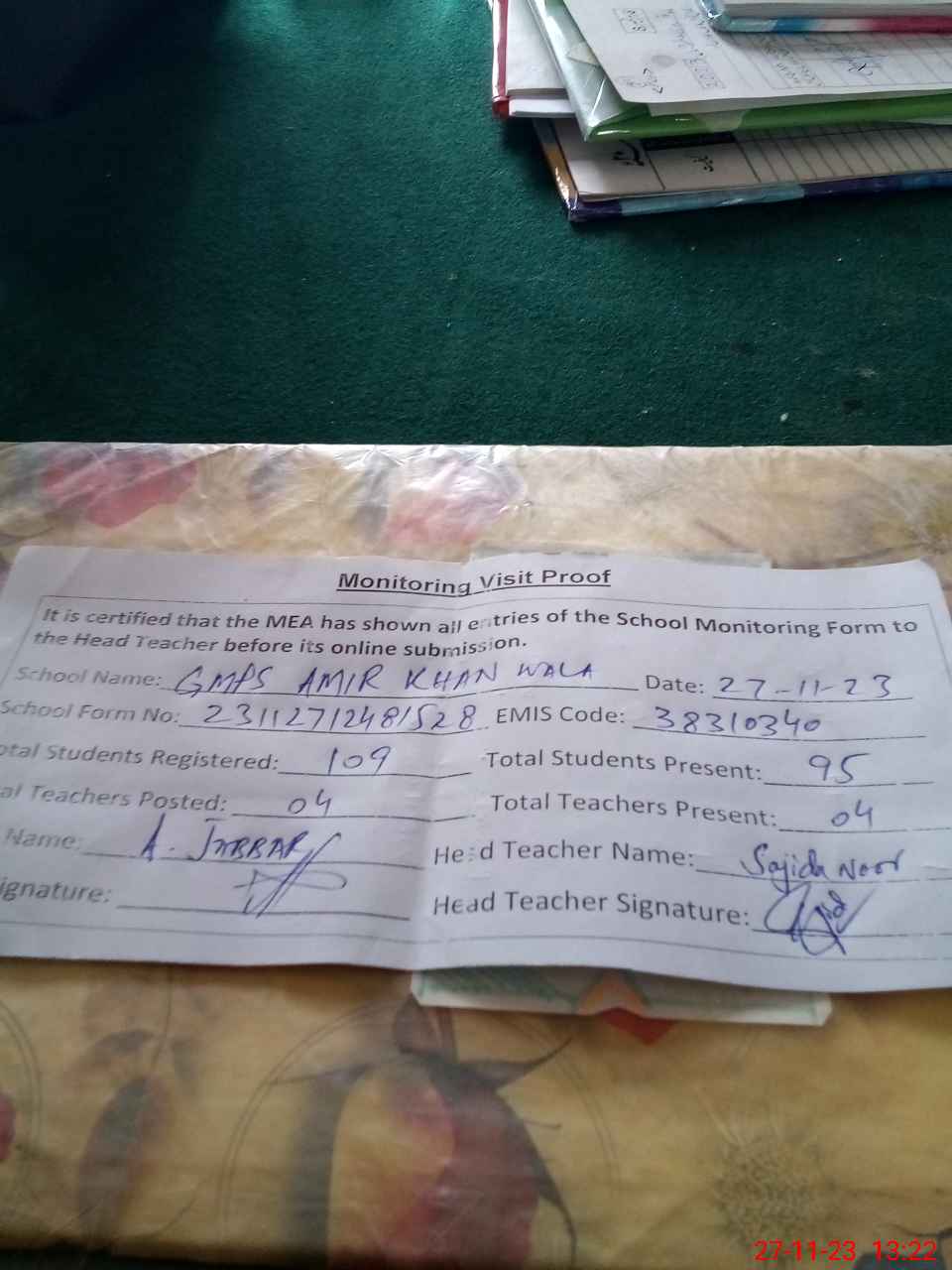 | EMIS Code: 38310340 | Name of School: GMPS AMIR KHAN WALA | |||