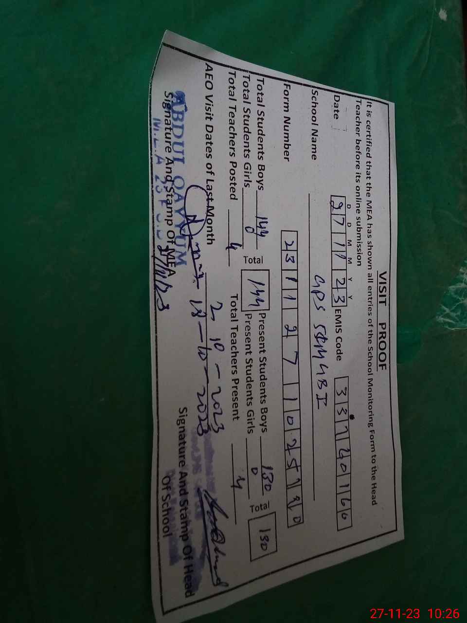 | EMIS Code: 33160160 | Name of School: GPS 544 GB I | |||
