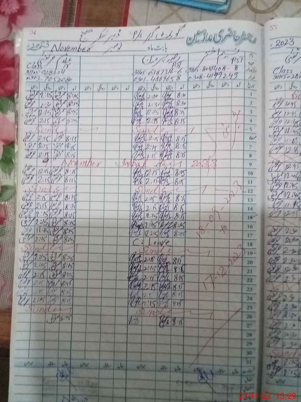 | CNIC | Full Name | Designation | R/C | Absence During Last Calender Month |
