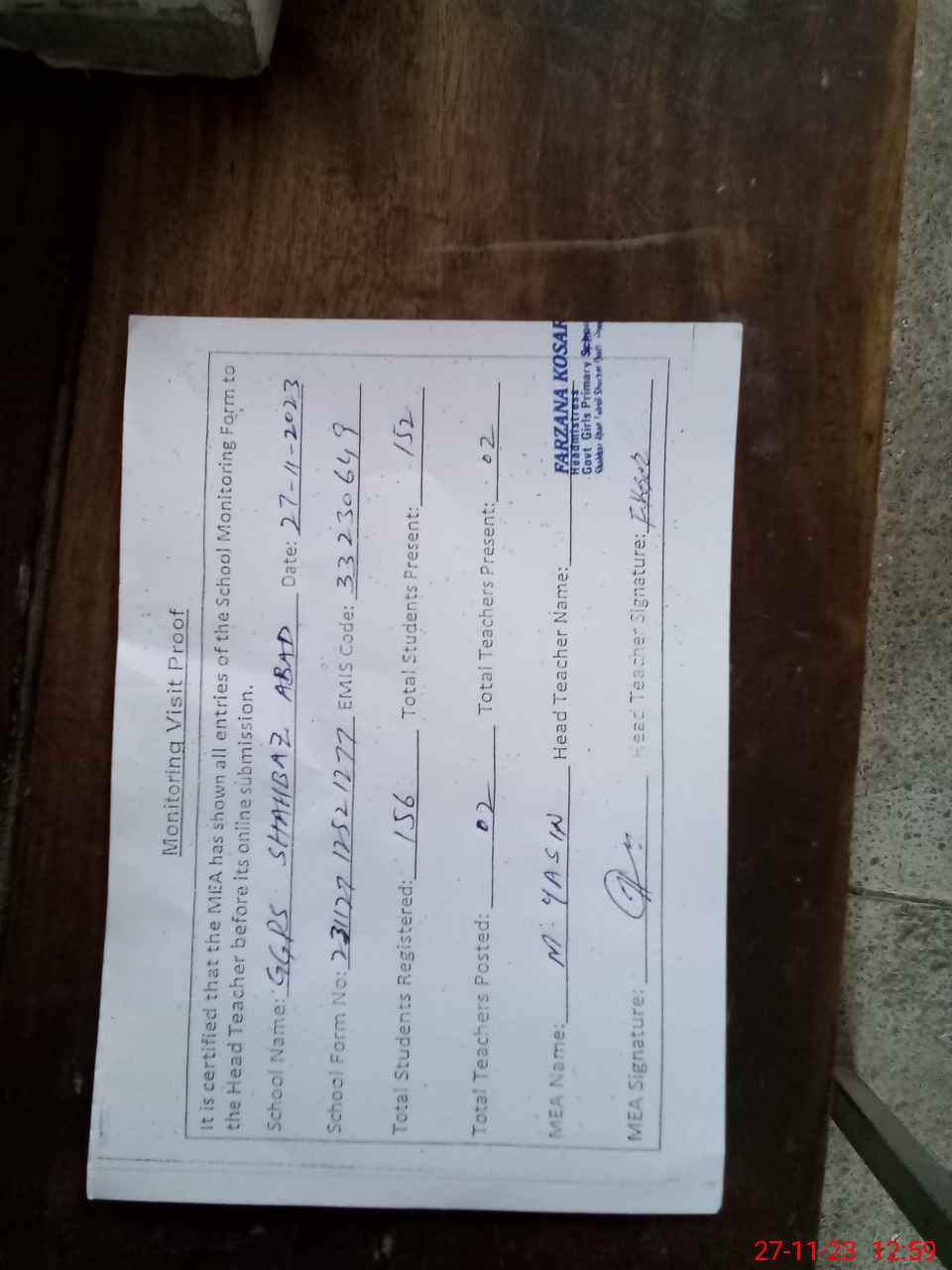 | EMIS Code: 33230649 | Name of School: GGPS SHAHBAZ ABAD | |||