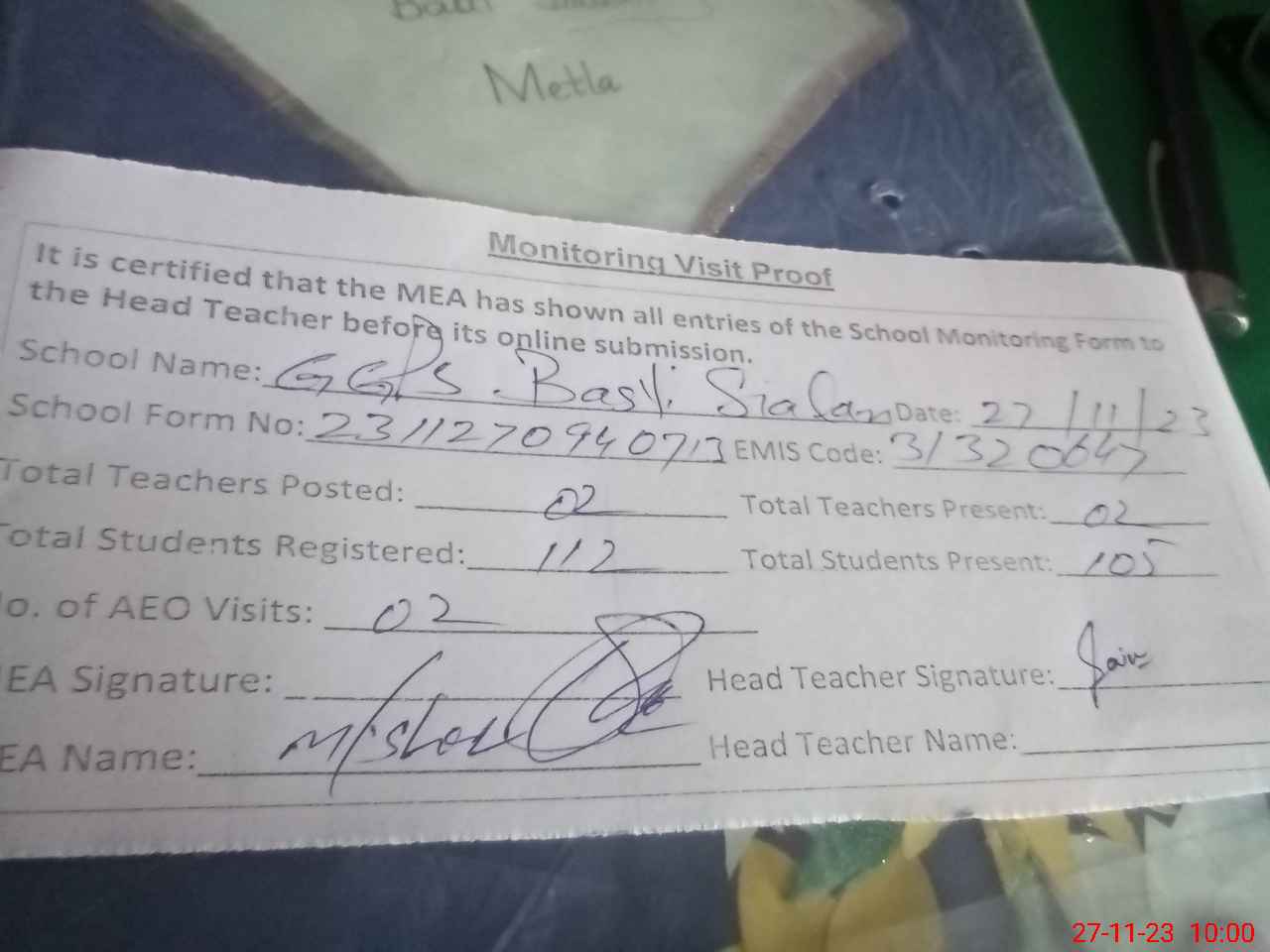 | EMIS Code: 31320647 | Name of School: GGPS BASTI SIALAN | |||