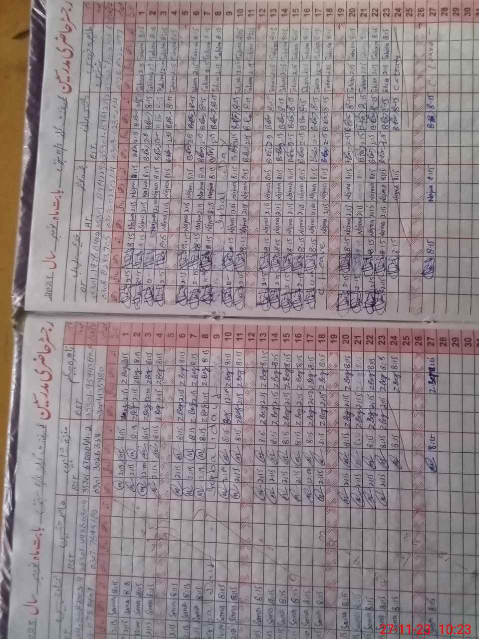 | CNIC | Full Name | Designation | R/C | Absence During Last Calender Month |