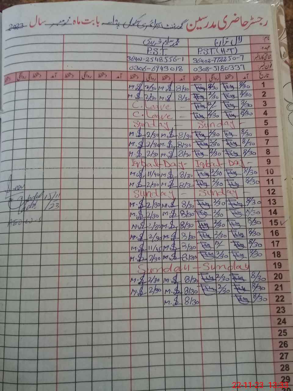 | Name: LA**** KH**** Designation: (School Headmaster's/Headmistress's) Pst(SC - MATH) Phone/Cell Number: 03**** |