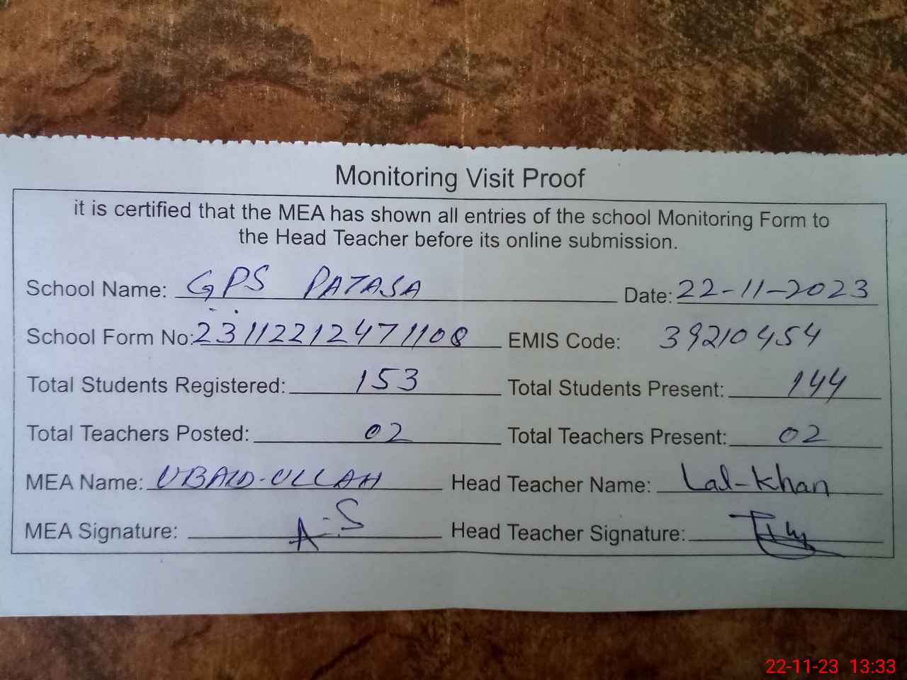 | EMIS Code: 39210454 | Name of School: GPS PATASA P/O DHUPAI | |||