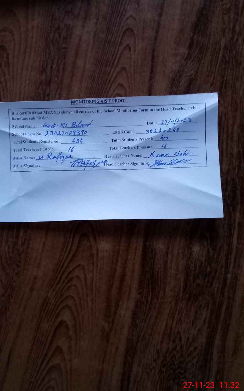 | EMIS Code: 38220248 | Name of School: GHS BILAND | |||