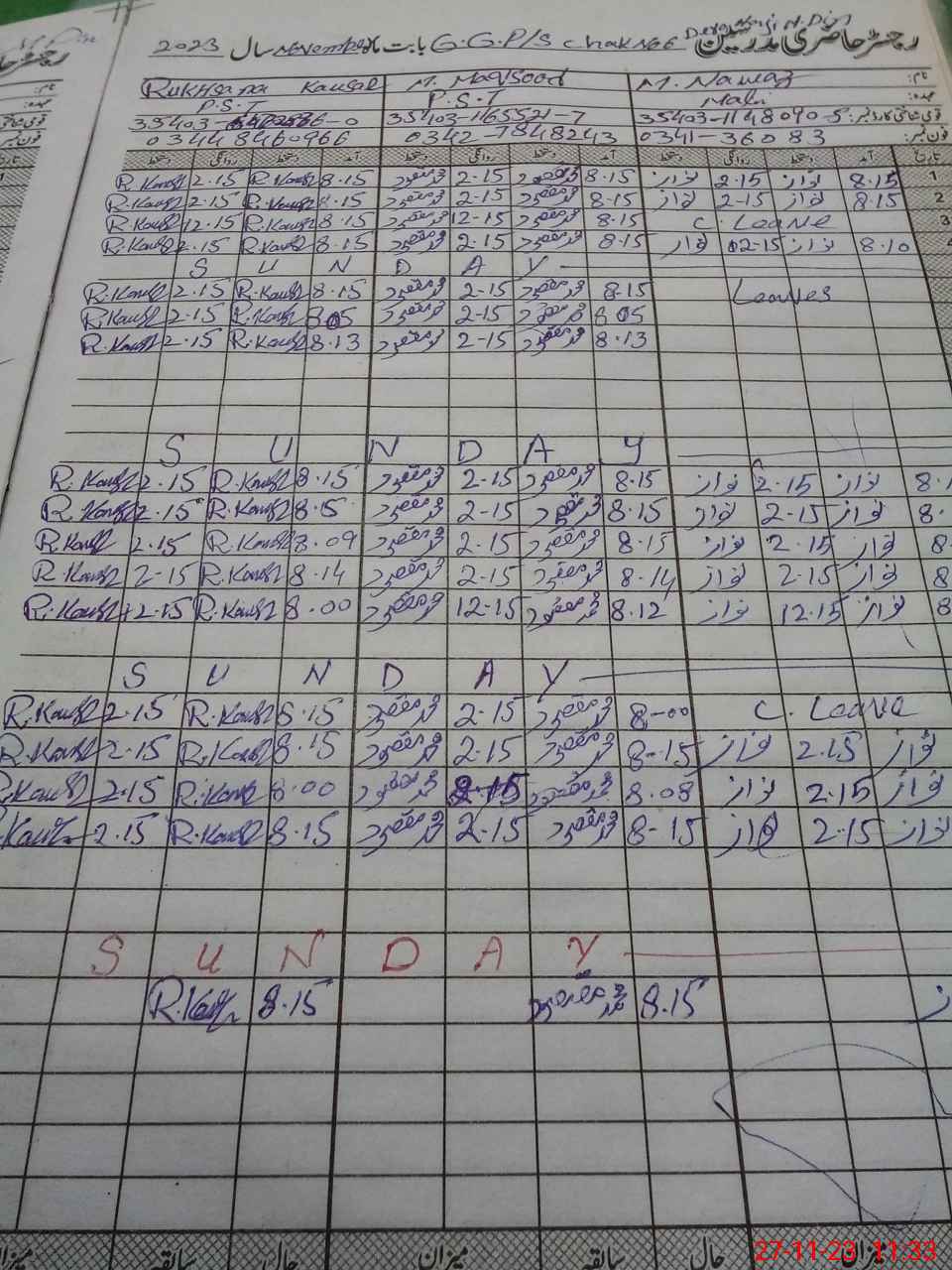| CNIC | Full Name | Designation | R/C | Absence During Last Calender Month |