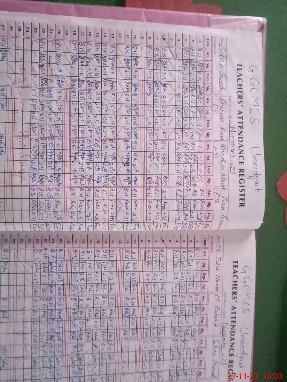 | Monitoring Date: 27-11-2023 | Start Time: 27-11-2023 09:30 AM | End Time: 27-11-2023 10:14 AM | Name of MEA: MU**** ZA**** IQ**** | |