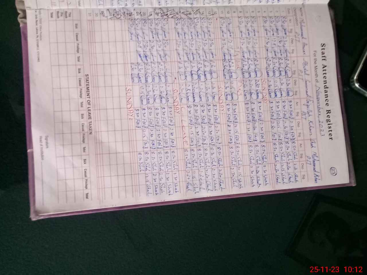| CNIC | Full Name | Designation | R/C | Absence During Last Calender Month |
